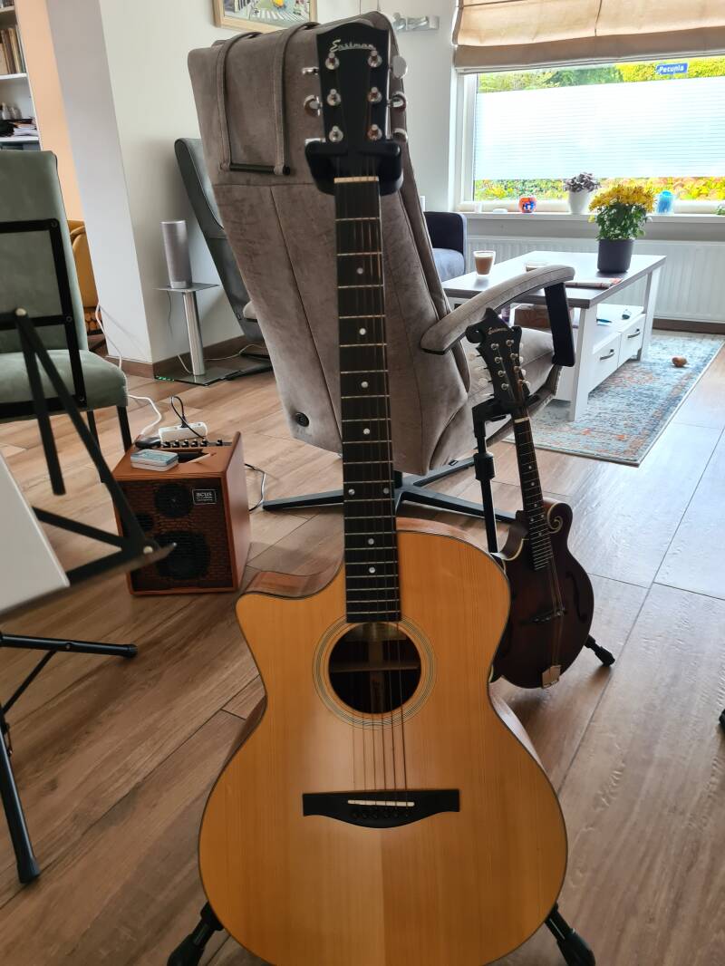 - de westerngitaar: stalen snaren smalle hals en grote klankkast.